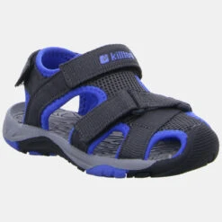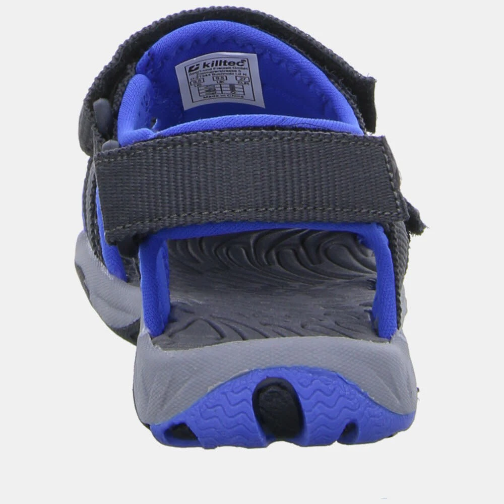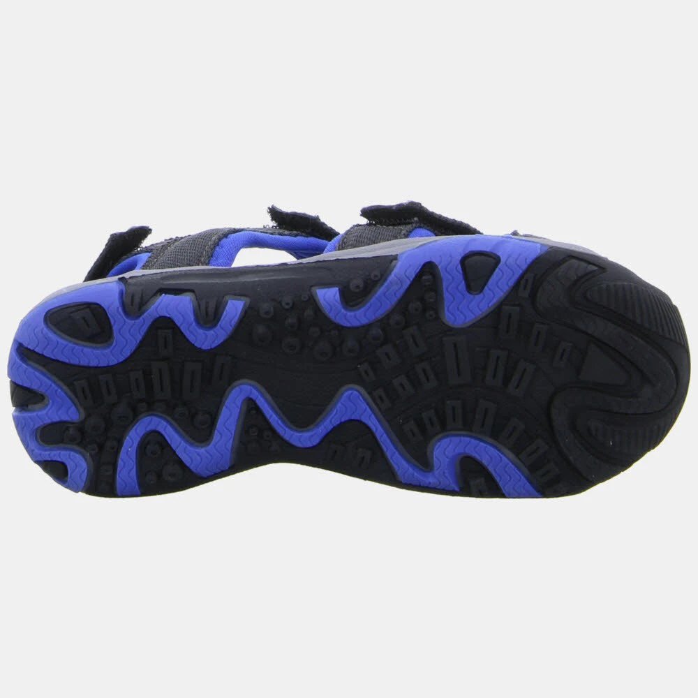 Freizeitsandale für Kinder. Schaft: Textil mit killsuede-Besätzen. Griffige rutschfeste Außensohle aus thermoplastischem Gummi.